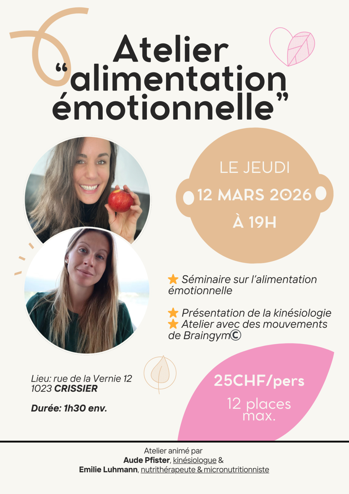 Je suis ravie de pouvoir vous proposer un atelier en collaboration avec une kinésiologue autour du sujet de l'alimentation émotionnelle que nous sommes énormément à subir au quotidien.